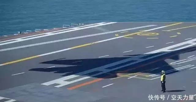 【官方画面中歼-15T在甲板上投下的阴影】