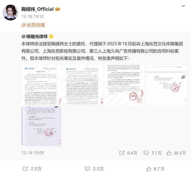 从合约到期时间的争执到收入分配的拉扯,再到签名真伪的鉴定争议。近日,丝芭与鞠婧祎这场“解约大戏”不断抛出新话题,霸占各大热搜榜单,俨然已经上升为一场“舆论战”,双方各执一词的隔空喊话,让网友眼花缭乱。