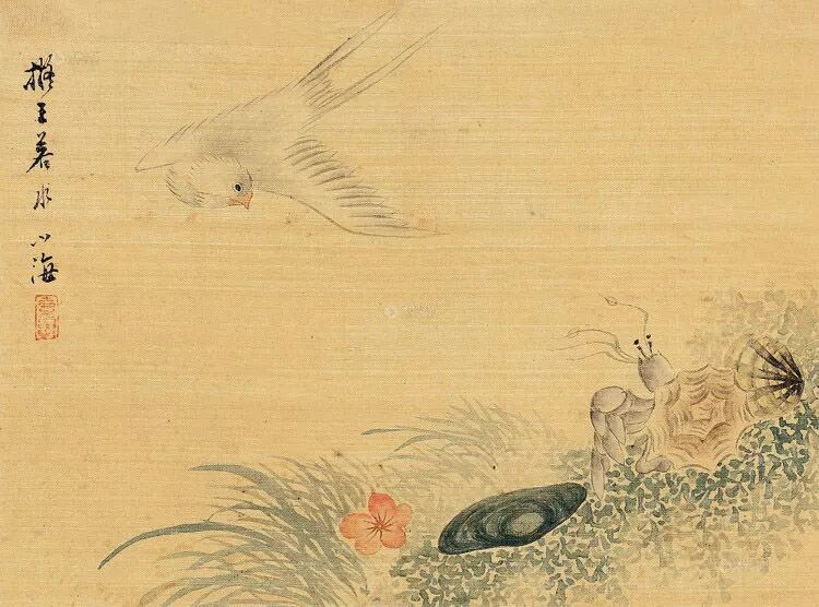 但翁小海最著称于世的还是他的绘画。初写人物,中年后专攻花鸟、草虫、水族等。他的花鸟画以“恽派”没骨为本,兼以明代“吴门”小写意画风,凡花卉禽鸟、水族昆虫,无不刻画精准,极富生态,设色明艳洁净,格调高雅,嘉道间独步江南。